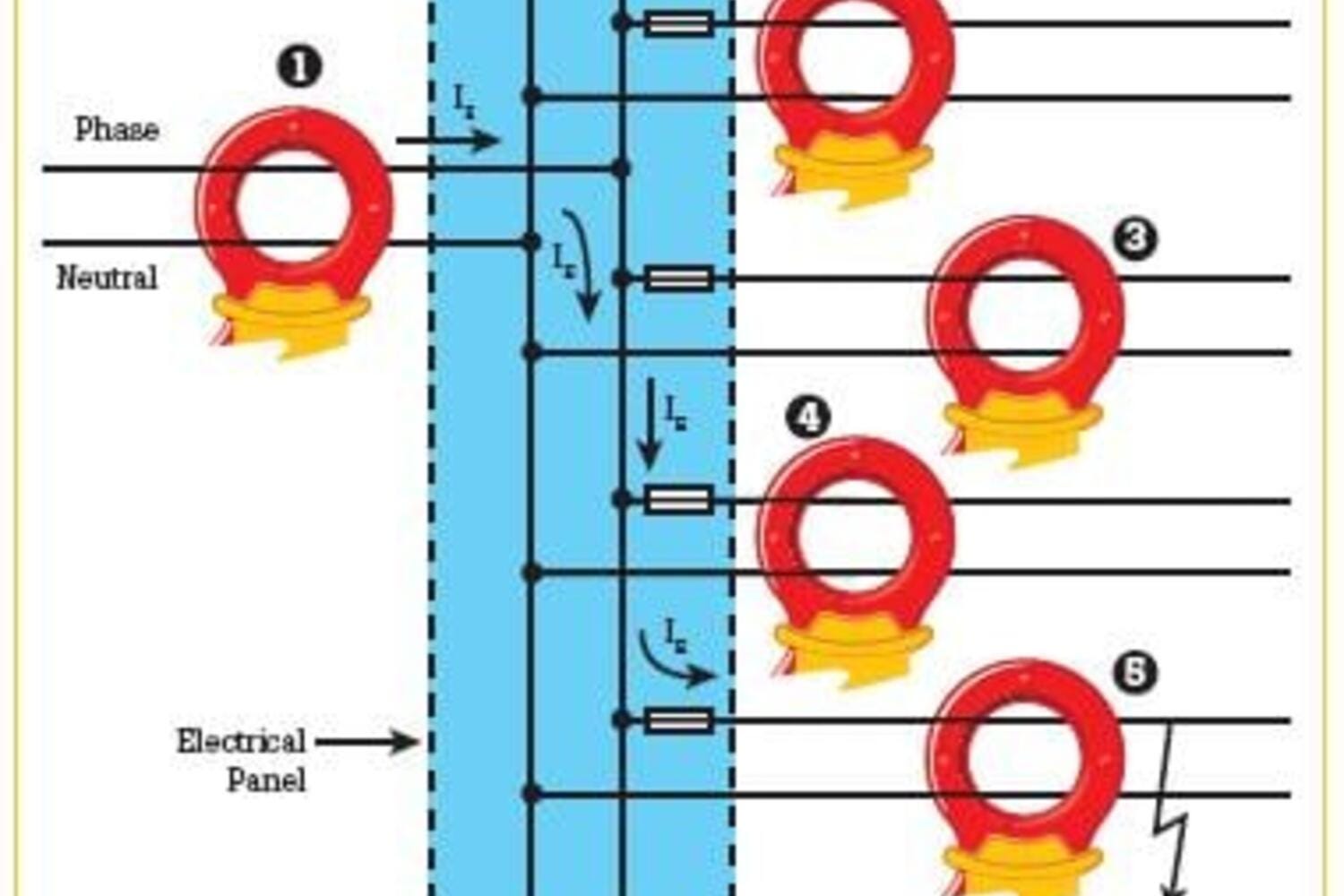 這一(yi)係(xi)列測(ce)量識别總漏流咊(he)故障源。首先(xian)可(kě)對連接到(dao)配(pei)電(dian)盤的(de)主(zhu)線(xiàn)進(jin)行測(ce)量。随後(hou)執行第2、3、4咊(he)5項(xiang)測(ce)量,識别承(cheng)載有(yǒu)較大(da)漏電(dian)流的(de)電(dian)路(見圖5)。(見圖5)