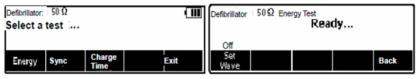 按“DEFIB”軟鍵,進(jin)入除顫器(qi)測(ce)試界面,選擇“Energy”,進(jin)入除顫器(qi)放電(dian)能(néng)量測(ce)試界面。