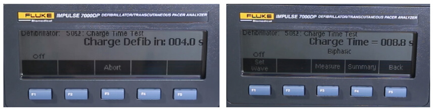 按下分(fēn)析儀F3 軟鍵(measure)幾秒(miǎo)鍾後(hou),分(fēn)析儀倒數(shu)計(ji)秒(miǎo)開始。當倒數(shu)計(ji)秒(miǎo)達到(dao)零時,蜂鳴器(qi)響起,立即按下除顫器(qi)上的(de)充電(dian)按鈕。分(fēn)析儀開始累計(ji)充電(dian)時間。