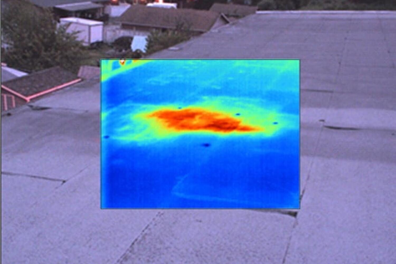 Due to the difference in thermal capacitance of wet building materials versus dry ones, moisture problems in flat or low-slope built-up roofs can often quite easily be detected with the use of a thermal imager. Infrared inspections can often accurately identify the critical problem areas, so a repair can be done, preventing premature full replacement costs.